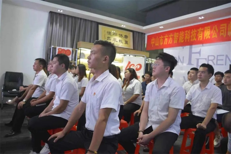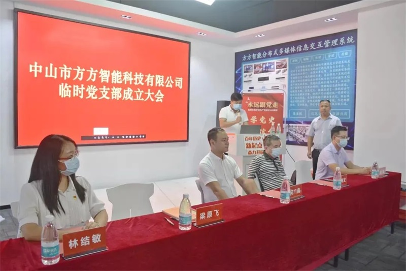 2021年是中國建黨100周年,借此建黨百年之際,9月9日下午,中山市方方智能科技有限公司臨時黨支部正式揭牌成立!西區街道黨建指導員黃焯文、沙朗社區黨委書記梁原飛、副書記林結敏、方方智能科技總經理何廣真、臨時黨支部書記周祥兵、公司黨員及公司全體員工出席了此次會議。