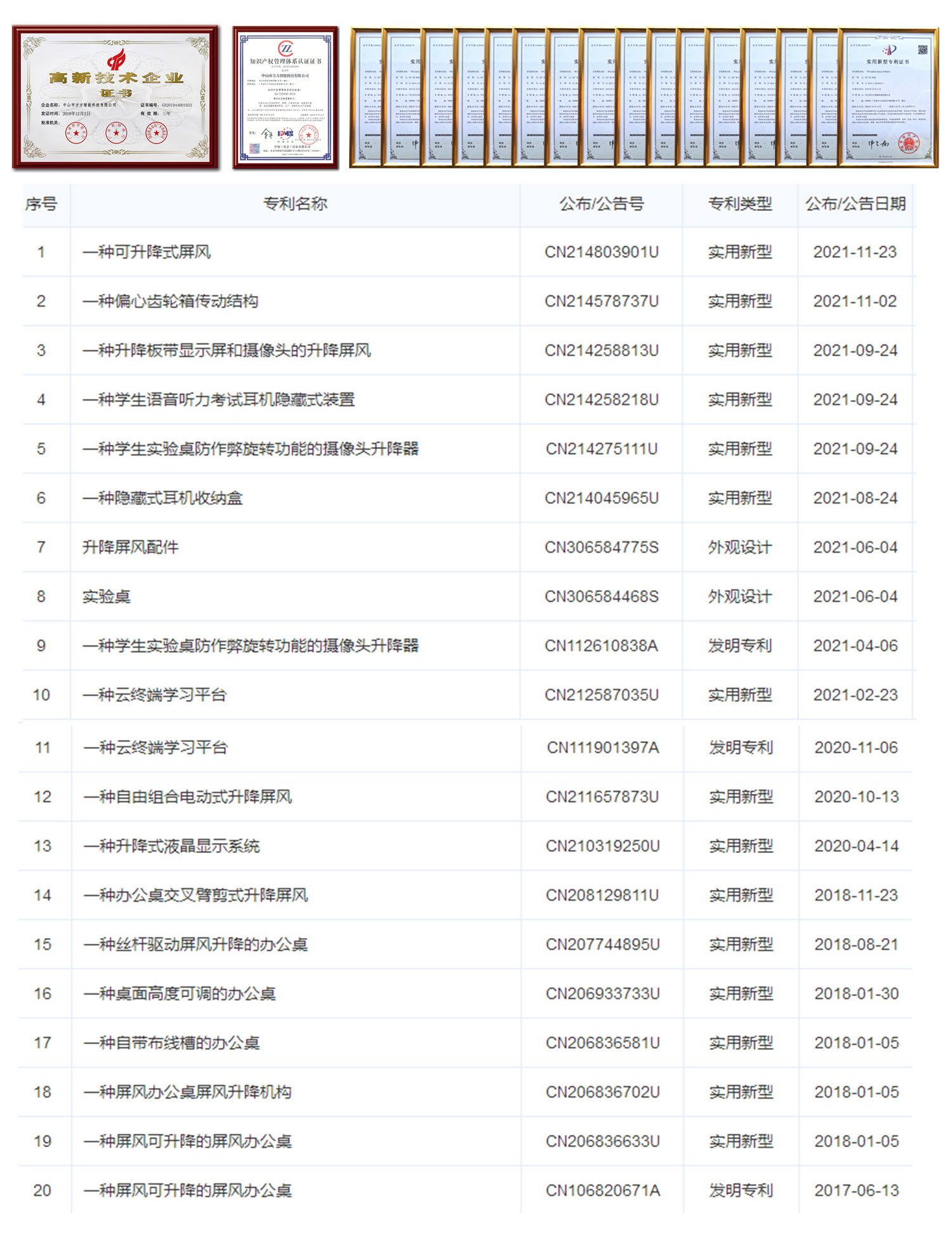 升降屏風(fēng)考試卡座產(chǎn)品目前已擁有:多項(xiàng)發(fā)明專利、多項(xiàng)實(shí)用新型專利、多項(xiàng)外觀專利和多項(xiàng)軟件著作權(quán)。
